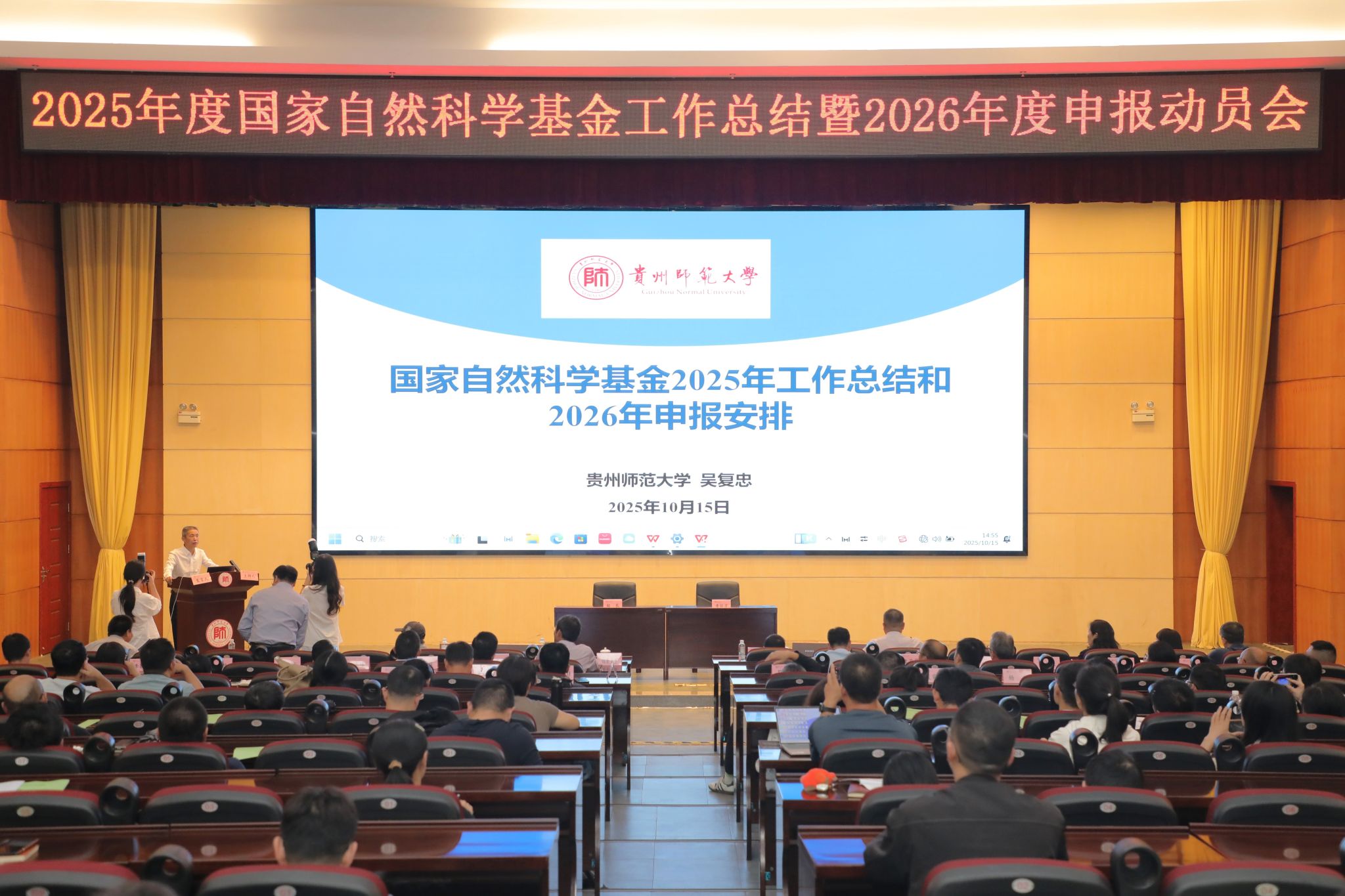 为扎实推进我校2026年度国家自然科学基金项目申报工作,及时传达国家自然科学基金改革政策动向。10月15日下午,贵州师范大学2025年度国家自然科学基金工作总结暨2026年度申报动员会在东区会议中心一楼学术报告厅召开。校长张绍东出席并讲话。副校长吴复忠主持。会议特邀了贵州大学资源与环境工程学院院长付勇和材料与冶金学院兰苑培教授作专题指导。