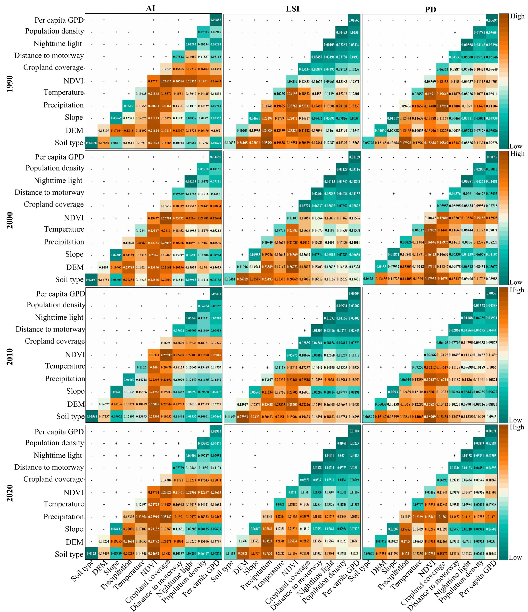 喀斯特草地景观指数驱动因素因子交互作用检测结果