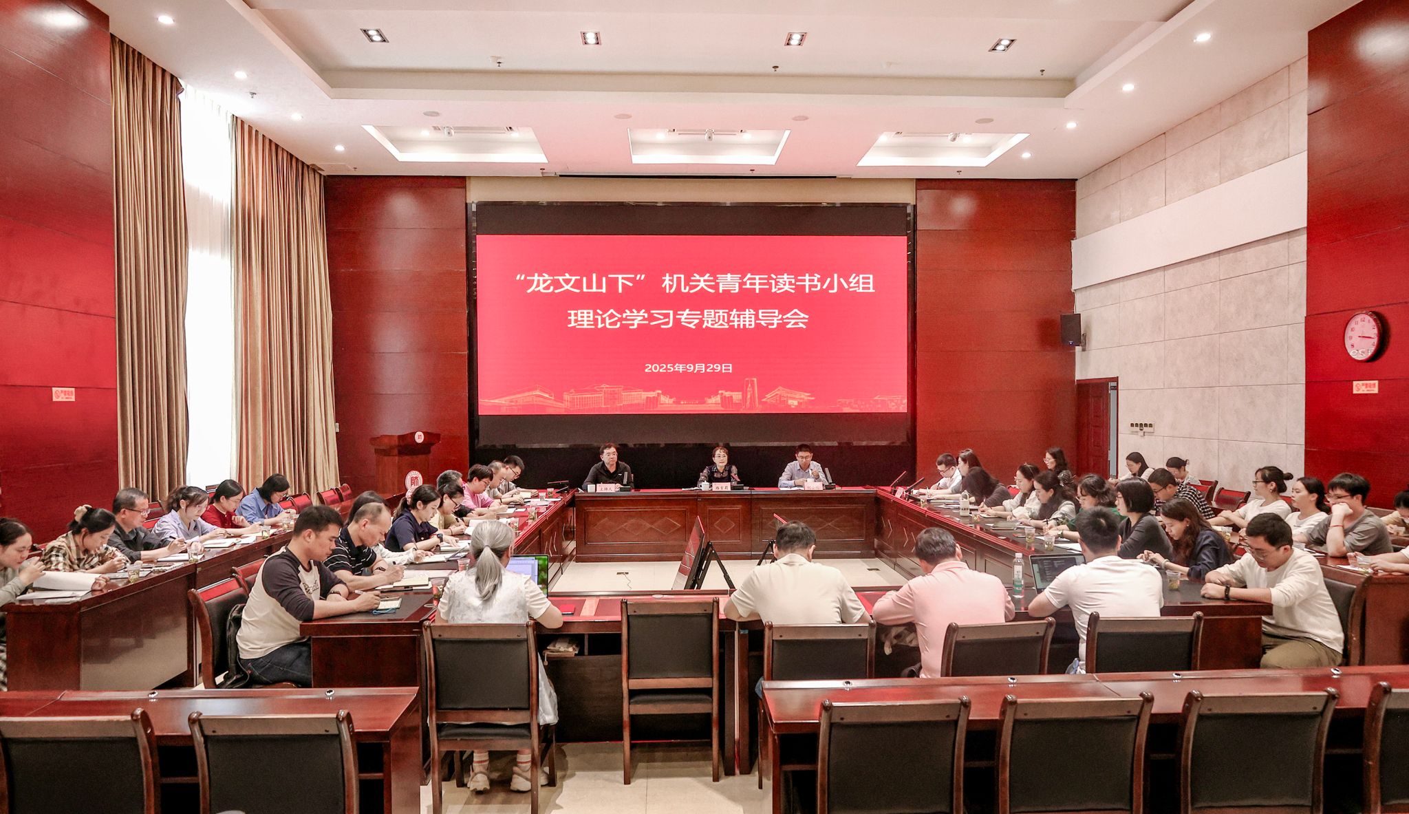 9月29日,为持续做好书香机关创建活动,将机关青年读书活动融入日常工作,深入学习学校第五次党代会精神,机关党委在花溪校区东区行政楼主楼六楼多功能厅举办“龙文山下”机关青年读书小组理论学习专题辅导会。校党委副书记路言莉出席活动并讲话。机关各党支部委员代表、机关各工会小组代表50余人参会,活动由机关党委书记巴建伟主持。