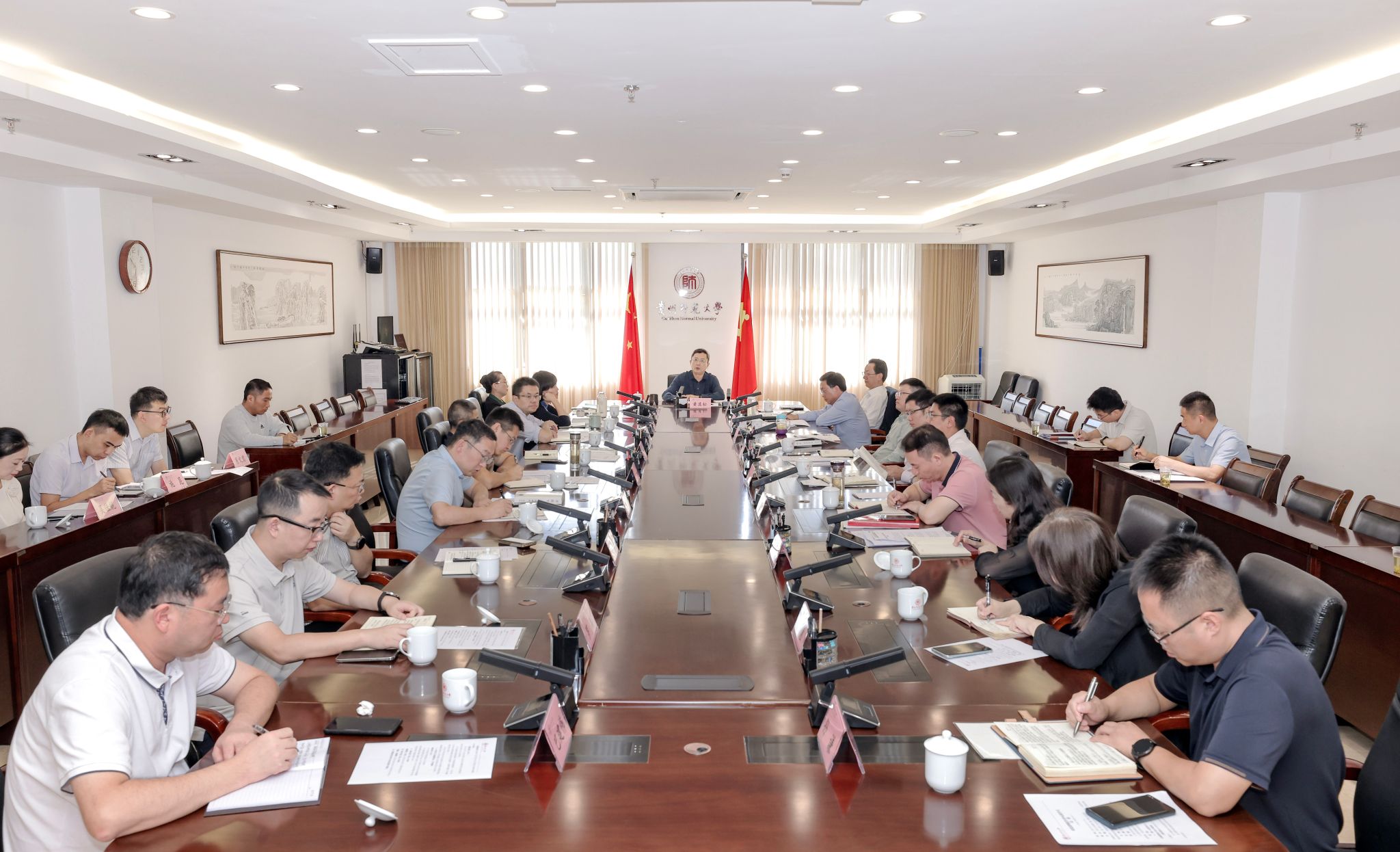 10月17日上午,贵州师范大学党委理论学习中心组2025年第8次学习会议在西校区东区行政楼五楼二会议室召开。会议围绕“深入学习《习近平谈治国理政》第五卷,全面贯彻党的教育方针、加强国防教育、铸牢中华民族共同体意识,以理论武装推动学校各项事业高质量发展,为建设教育强国贡献力量”展开研讨。校党委领导班子成员、非中共党员校领导、校党委委员参会。会议由校党委书记黄其松主持。