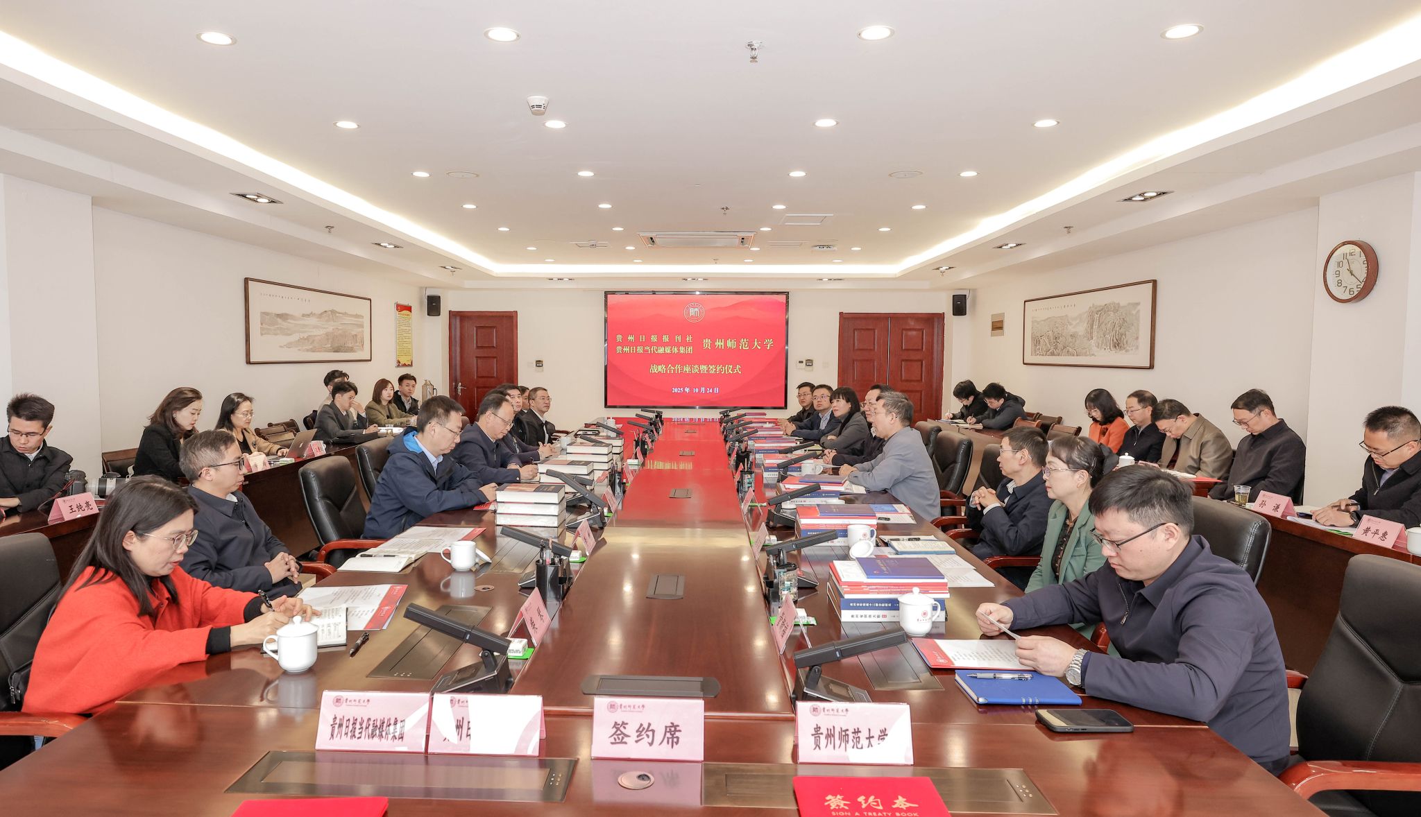 10月24日上午,贵州日报报刊社、贵州日报当代融媒体集团与贵州师范大学在学校行政主楼五楼2会议室签署战略合作协议。贵州日报报刊社社长、贵州日报当代融媒体集团党委书记、董事长陈麟,报刊社总编辑李卫红,副社长张焱,集团党委委员、副总经理马小成;贵州师范大学党委书记黄其松,校长张绍东,校党委副书记路言莉,副校长刘瑾、管新福、冯海涛出席仪式。校党委副书记陈应勇主持签约仪式。