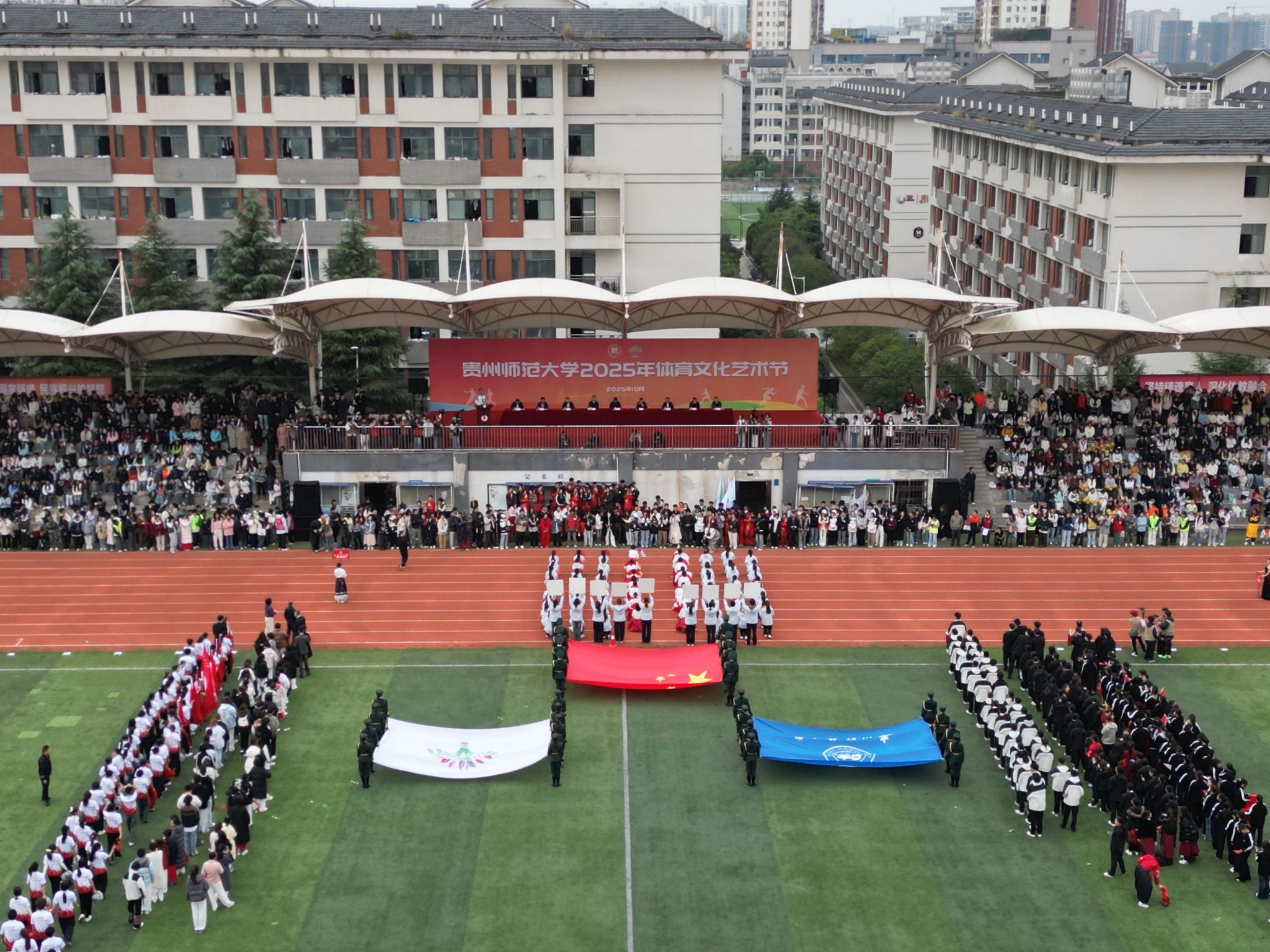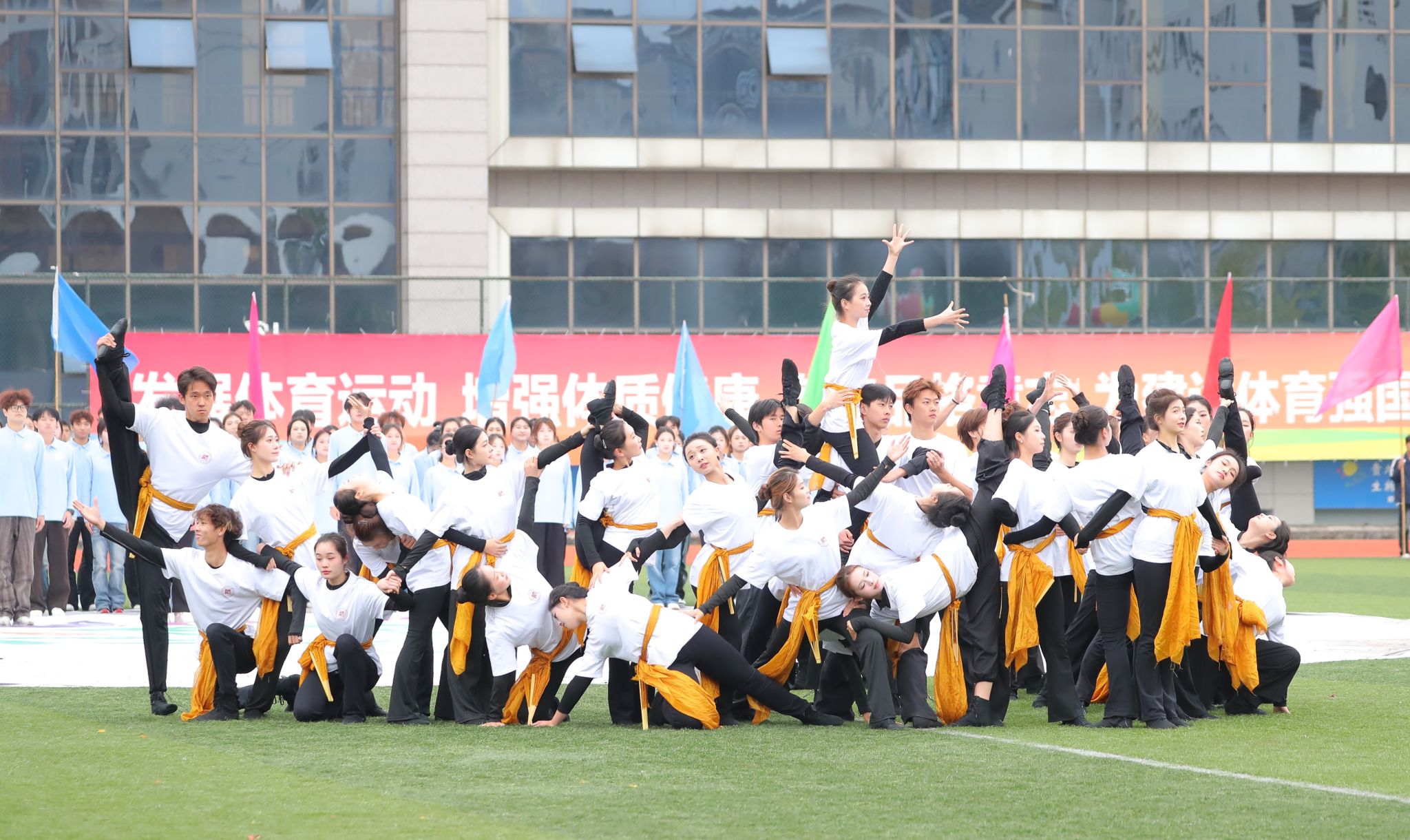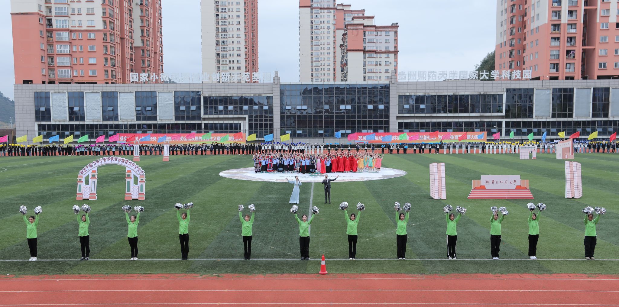仪仗方队、彩旗方队、冠军方队、裁判员方队及各学院方队依次入场,青春气息与热烈氛围扑面而来。文艺表演分 “铭记历史传薪火”“体育强国展风采”“闪亮青春铸师魂” 三篇章精彩呈现。《龙腾狮跃启新程》拉开序幕,表演者身姿矫健、演绎灵动,舞出青春朝气与奋进豪情;合唱舞蹈《黄河大合唱》旋律雄浑、演绎震撼,彰显中华儿女铭记历史的坚定意志;朗诵《贵州放歌》饱含深情,诉说黔中大地沧桑巨变与蓬勃生机;《绳操律动》中,学子们动作整齐、身姿飒爽,融体育活力与韵律之美;《武道群英》一招一式刚劲有力,尽显体育强国青春风采;《青春时代》啦啦操节奏动感、姿态热情,展现学子自信昂扬面貌;《师道之光》歌舞舞姿优美、歌声动人,诠释师者立德树人的崇高精神。演出在《挺拔的香樟》歌声中落下帷幕,全体演员齐聚舞台,意蕴深长、催人奋进。