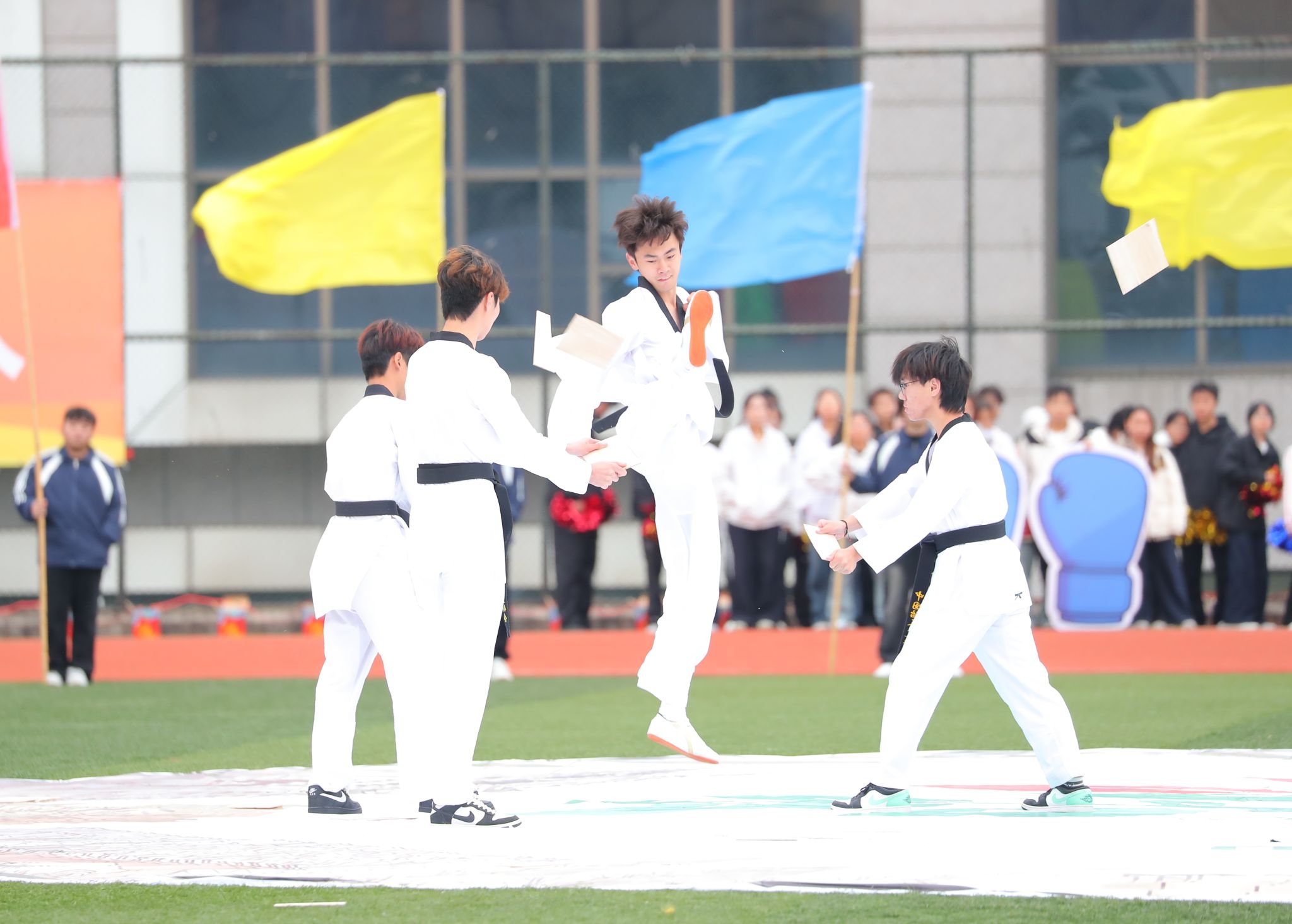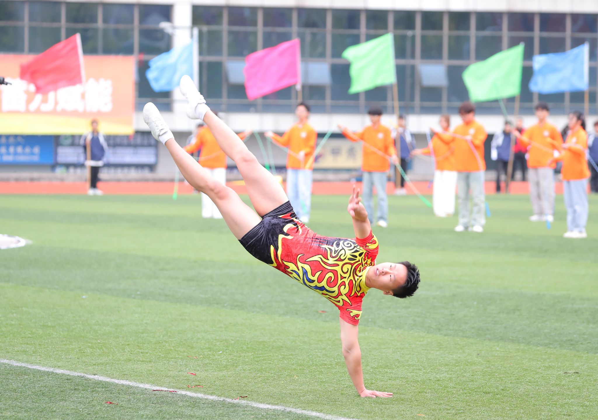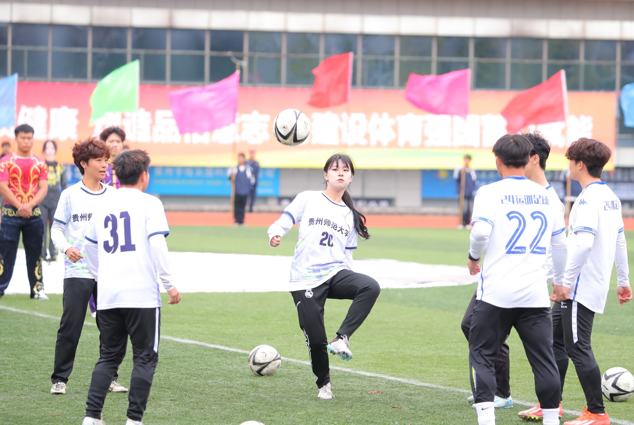 仪仗方队、彩旗方队、冠军方队、裁判员方队及各学院方队依次入场,青春气息与热烈氛围扑面而来。文艺表演分 “铭记历史传薪火”“体育强国展风采”“闪亮青春铸师魂” 三篇章精彩呈现。《龙腾狮跃启新程》拉开序幕,表演者身姿矫健、演绎灵动,舞出青春朝气与奋进豪情;合唱舞蹈《黄河大合唱》旋律雄浑、演绎震撼,彰显中华儿女铭记历史的坚定意志;朗诵《贵州放歌》饱含深情,诉说黔中大地沧桑巨变与蓬勃生机;《绳操律动》中,学子们动作整齐、身姿飒爽,融体育活力与韵律之美;《武道群英》一招一式刚劲有力,尽显体育强国青春风采;《青春时代》啦啦操节奏动感、姿态热情,展现学子自信昂扬面貌;《师道之光》歌舞舞姿优美、歌声动人,诠释师者立德树人的崇高精神。演出在《挺拔的香樟》歌声中落下帷幕,全体演员齐聚舞台,意蕴深长、催人奋进。