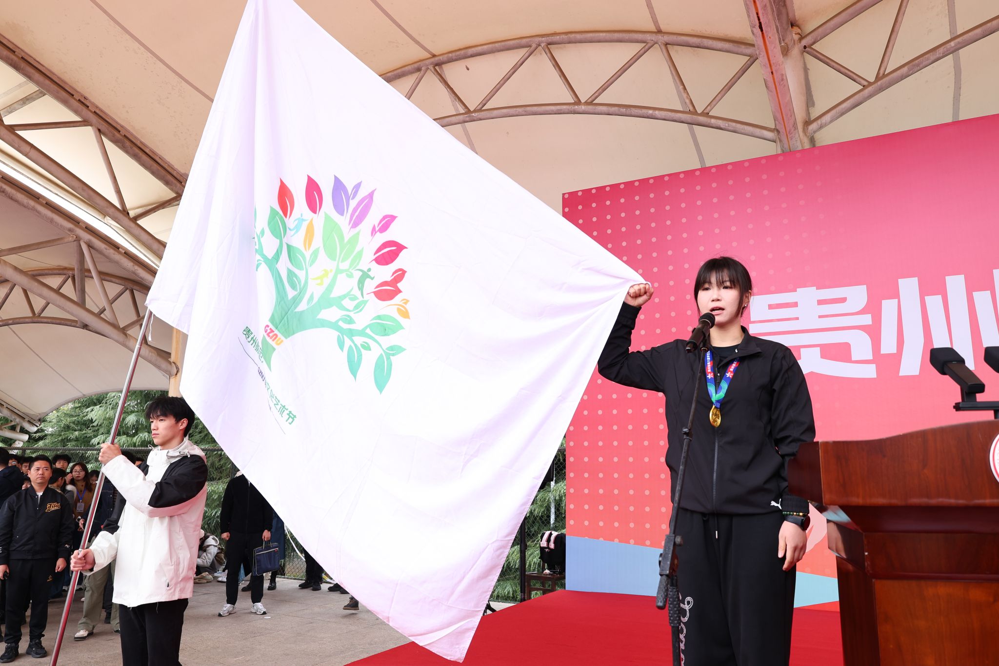 开幕式上,体育学院教师、游泳国家级裁判员覃波代表裁判员宣誓;体育学院研究生、省第六届学生运动会女子排球冠军得主王蕊代表运动员宣誓。