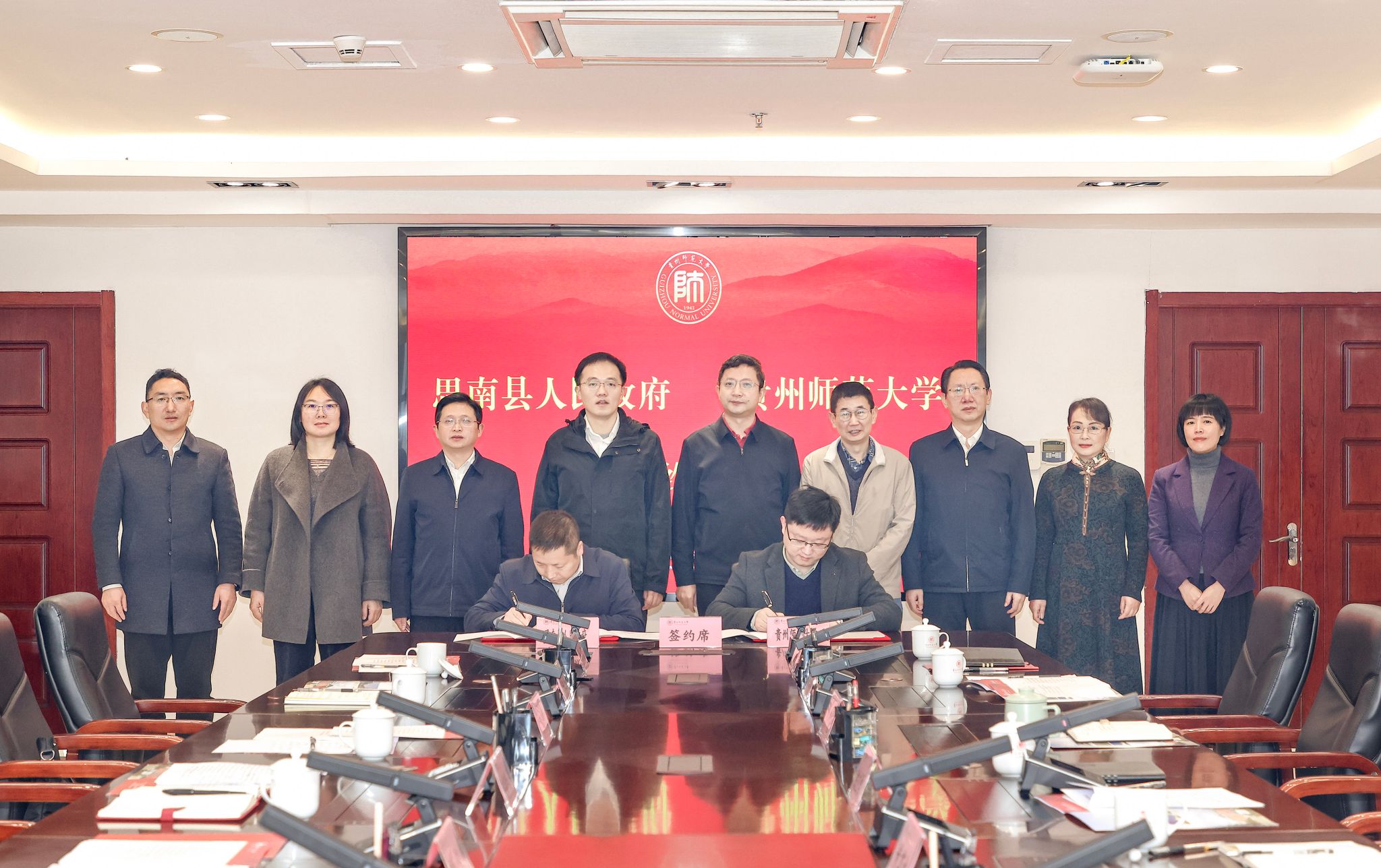 11月11日,贵州师范大学与思南县人民政府战略合作协议签署仪式在学校东区行政主楼举行。思南县委书记龚仆,县委常委、组织部部长何寻梦,县委常委、宣传部、统战部部长范俊敏,副县长滕树炳,教育局局长田永逸,文旅局局长王芳;贵州师范大学党委书记黄其松,校长张绍东,校党委副书记路言莉,副校长刘瑾、管新福,校党委常委何小明、丁龙出席签约仪式,我校党委副书记陈应勇主持。