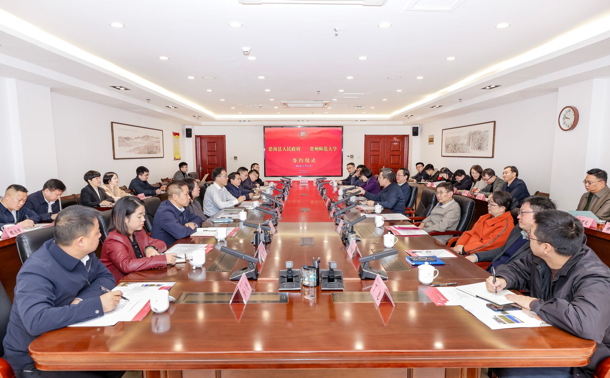 仪式上,贵州师范大学副校长管新福与思南县副县长滕树炳代表双方签约。双方相关职能部门、学院、中学负责人参加仪式。