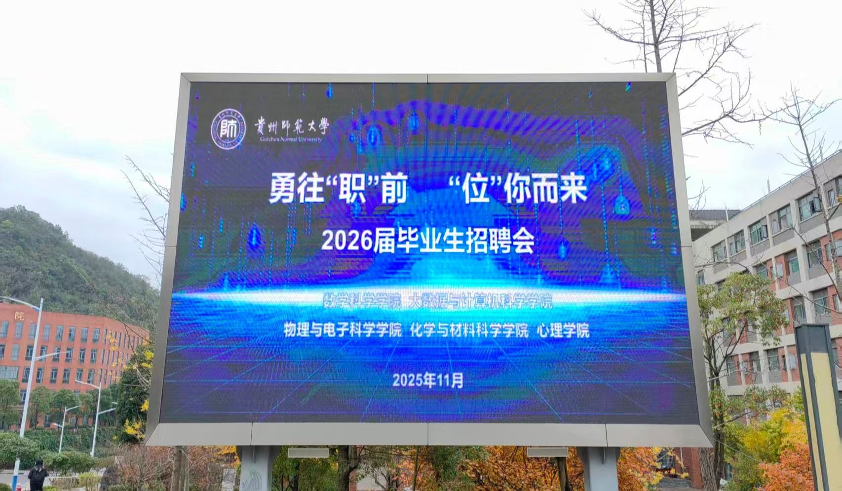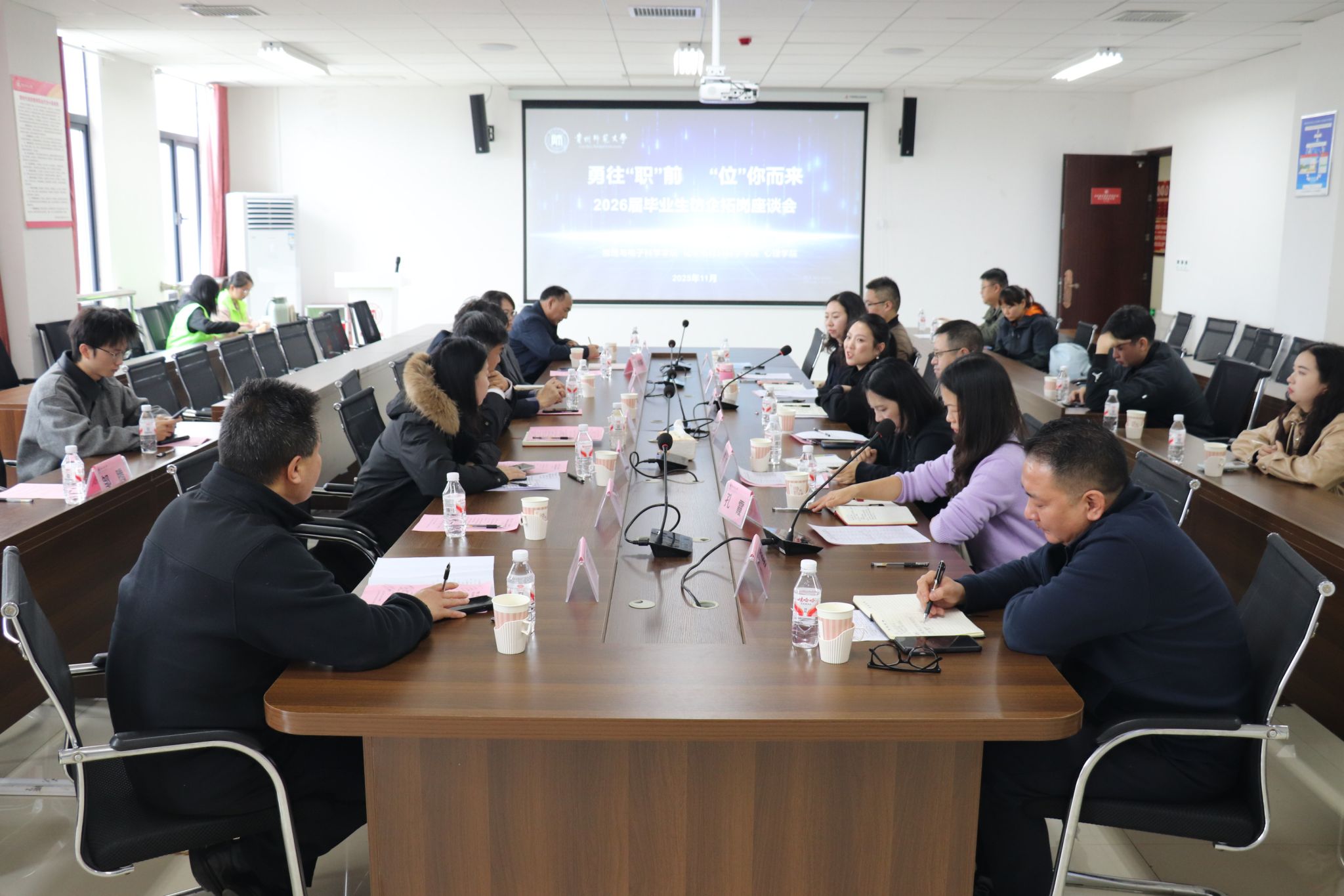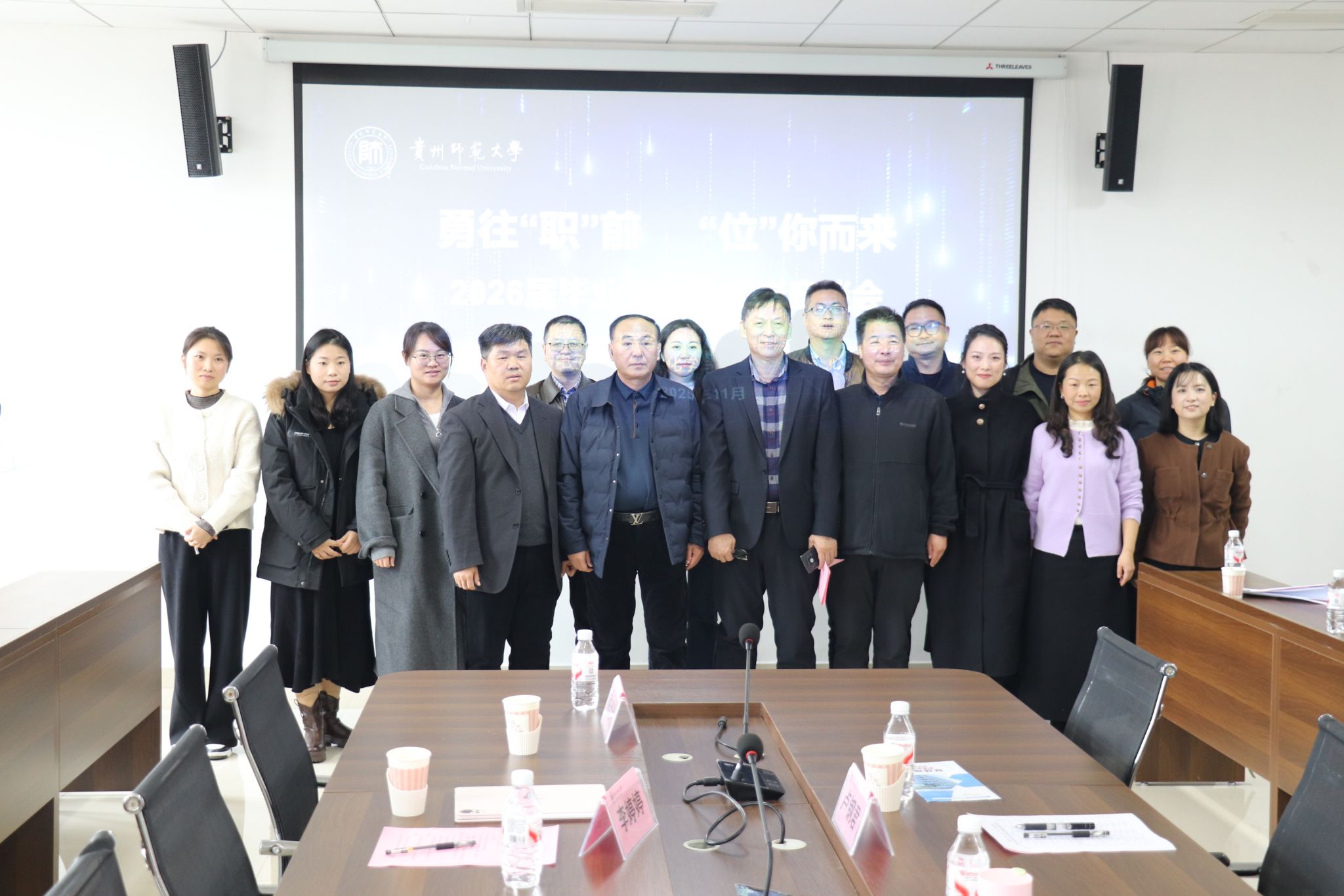 11月14日,由贵州师范大学数学科学学院、大数据与计算机科学学院、物理与电子科学学院、化学与材料科学学院、心理学院联合主办的2026届毕业生“勇往‘职’前・‘位’你而来”就业招聘会暨访企拓岗座谈会在学校就业指导服务中心举行。此次活动是五所学院践行服务国家“稳就业”“保就业”大局、强化校企协同育人的重要举措,为毕业生更加充分、更高质量就业奠定了坚实基础。