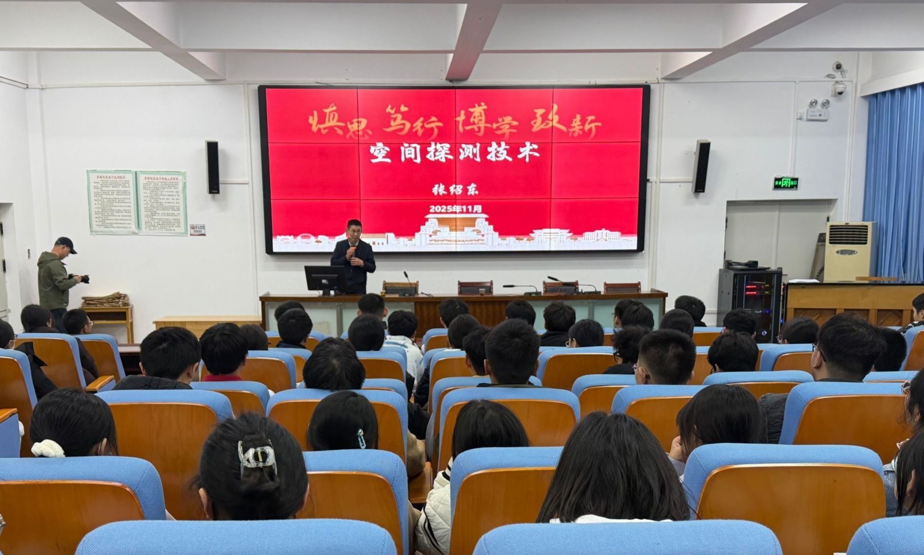 张绍东从空间探测技术的发展历程、科研成果等方面,生动阐释了空间探测技术在国家安全、经济发展及人类探索中的重要意义,激发了同学们对航天科学与技术领域的浓厚兴趣。此外,张绍东以“选择未来”为主题与学生进行了交流,他鼓励大家要珍惜中学学习时光,树立远大理想,努力拼搏,增强体魄,为将来投身祖国建设事业做好准备。