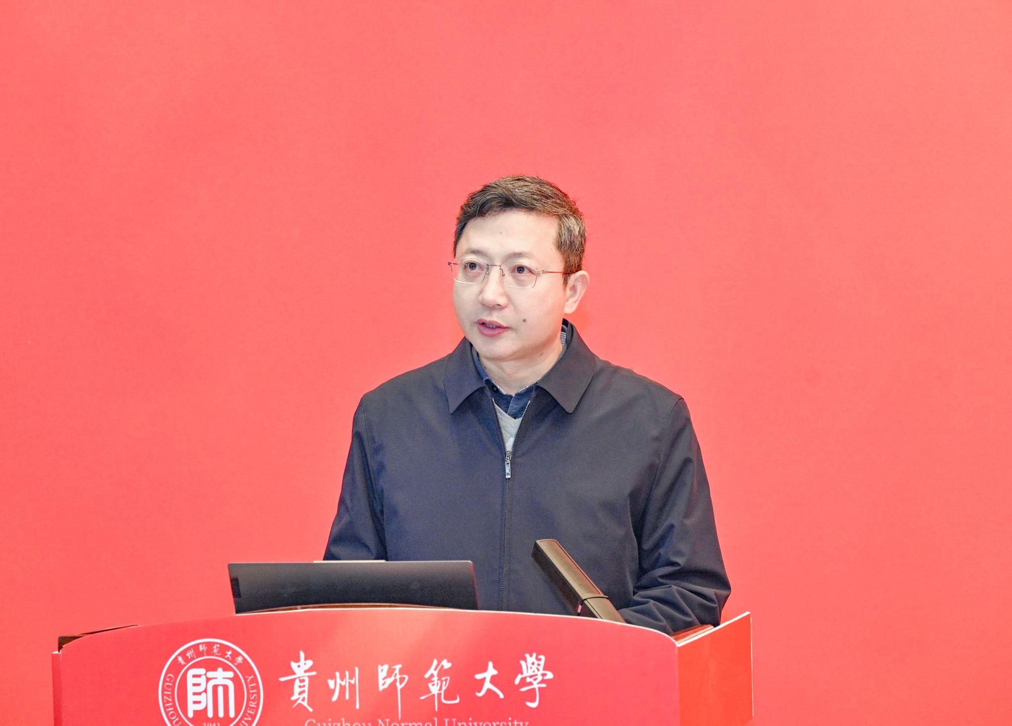 黄其松致欢迎辞,他指出,贵州师范大学将坚守大学本位、师范定位、贵州区位,重点聚焦课程内容一体化设计、教师队伍一体化培养、实践资源一体化共享、教学管理一体化推进四大关键领域,持续推广“大中小学思想政治教育一体化”协同发展共同体、“主题式”跨学段接力教学、“行走的思政课”社会实践大课堂等创新举措,全力打造具有贵师大特色的大中小学思想政治教育一体化建设品牌。