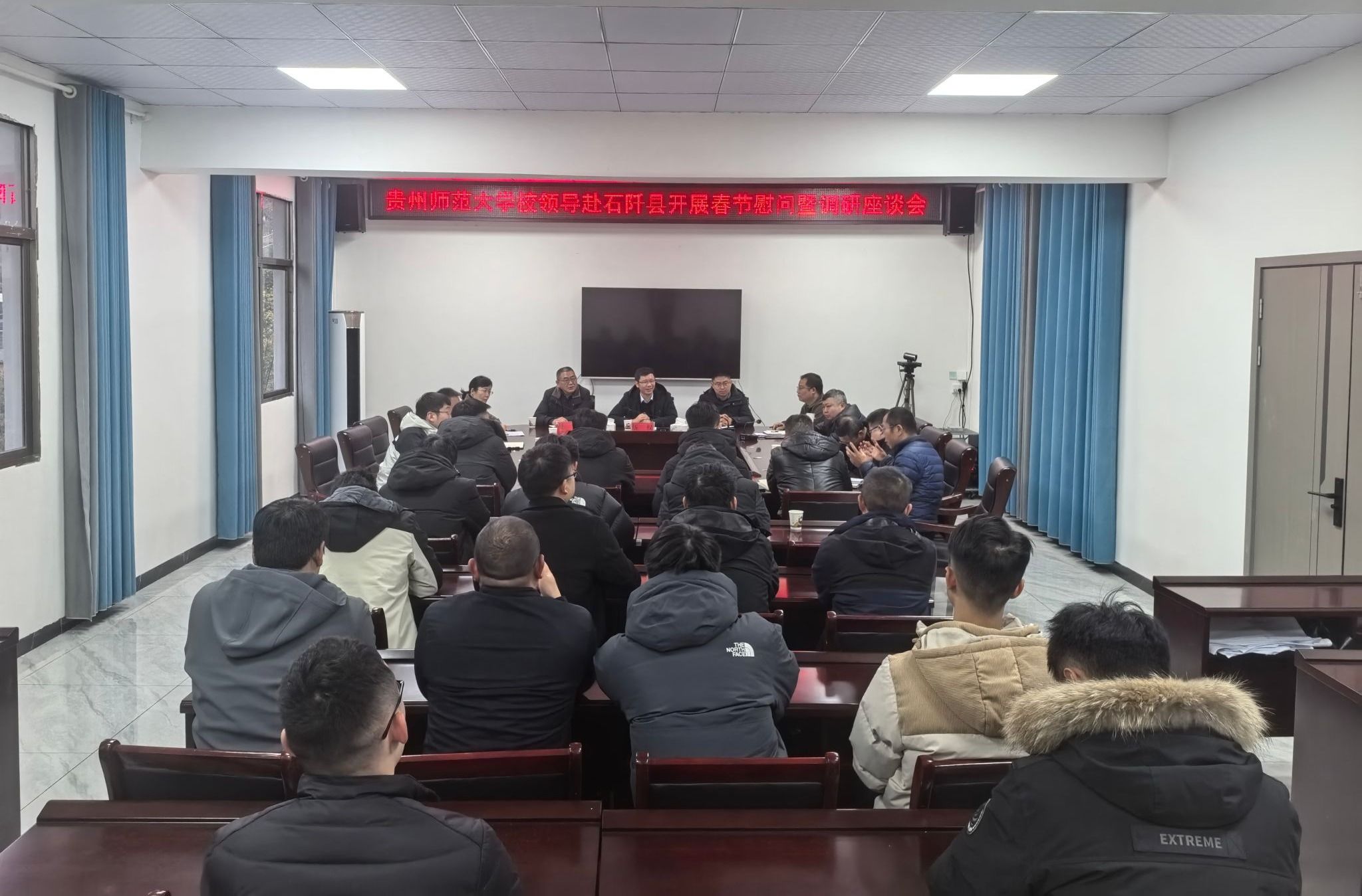 1月24日,副校长伍权率队赴石阡县,看望慰问学校全体驻村干部。校党委常委、组织部部长何小明,乡村振兴综合协调办公室相关负责人参加慰问及座谈,学校全体驻村干部参加座谈会。