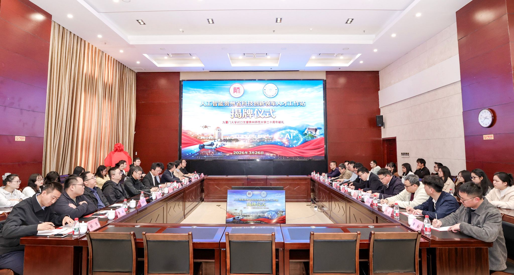 3月26日,学校在东区行政主楼六楼多功能厅举行“人工智能贵州省科技创新领军人才工作站”揭牌仪式。我校副校长伍权、厦门大学校长助理纪荣嵘出席揭牌仪式并致辞;我校网络空间安全学院党委副书记陈彦、教授夏道勋,厦门大学信息学院教授喻骁等参加。