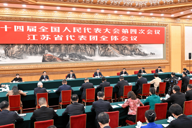 在听取大家发言后,习近平作了发言,表示赞成政府工作报告,并联系江苏实际就抓好“十五五”经济社会发展提出明确要求。