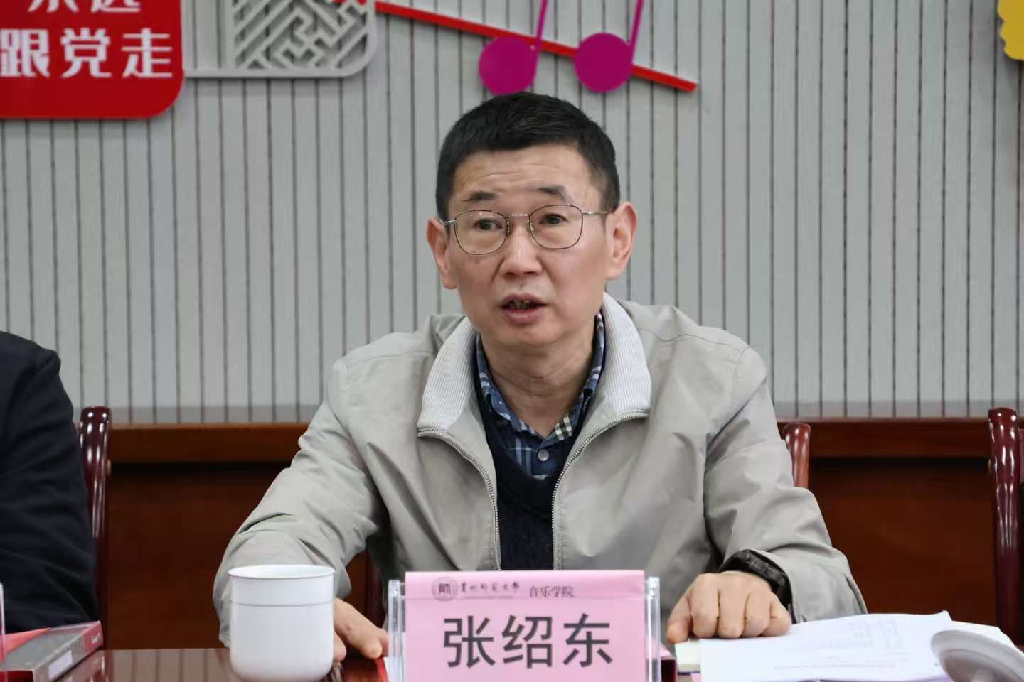 在认真听取汇报后,张绍东对音乐学院的发展定位与未来路径作出系统部署。他强调,学院发展的核心关键在人才,要打通拔尖人才培养通道,聚焦师范类人才培养与全国竞争力提升,明确表演类人才培养的辅助定位,深挖艺术创作水平,打造民族特色、红色品牌的文化IP,以艺术激发人的创新能力。针对学科建设,张绍东要求,必须锚定“音乐教师教育”核心,以民族音乐教育、传统音乐教育、红色音乐教育、比较音乐教育、音乐课程与教学论等为支撑,构建协同发展的学科体系,破解学科建设不足、职称评审困难的瓶颈。张绍东同时对学院管理与发展提出具体要求:破除固有思维,全力扶持青年教师成长,端正师风学风、严格师德师风,厘清发展定位、找准突破方向;主动争取外部资源与社会资源,打通平台壁垒,联动校内做强通识教育,联动校社主动对接,推动已签约合作项目实质性落地;深入了解教师诉求,以严管厚爱推动学院整体发展,同时加强对学生的严格管理与正面引导,强化学风建设与日常督导。