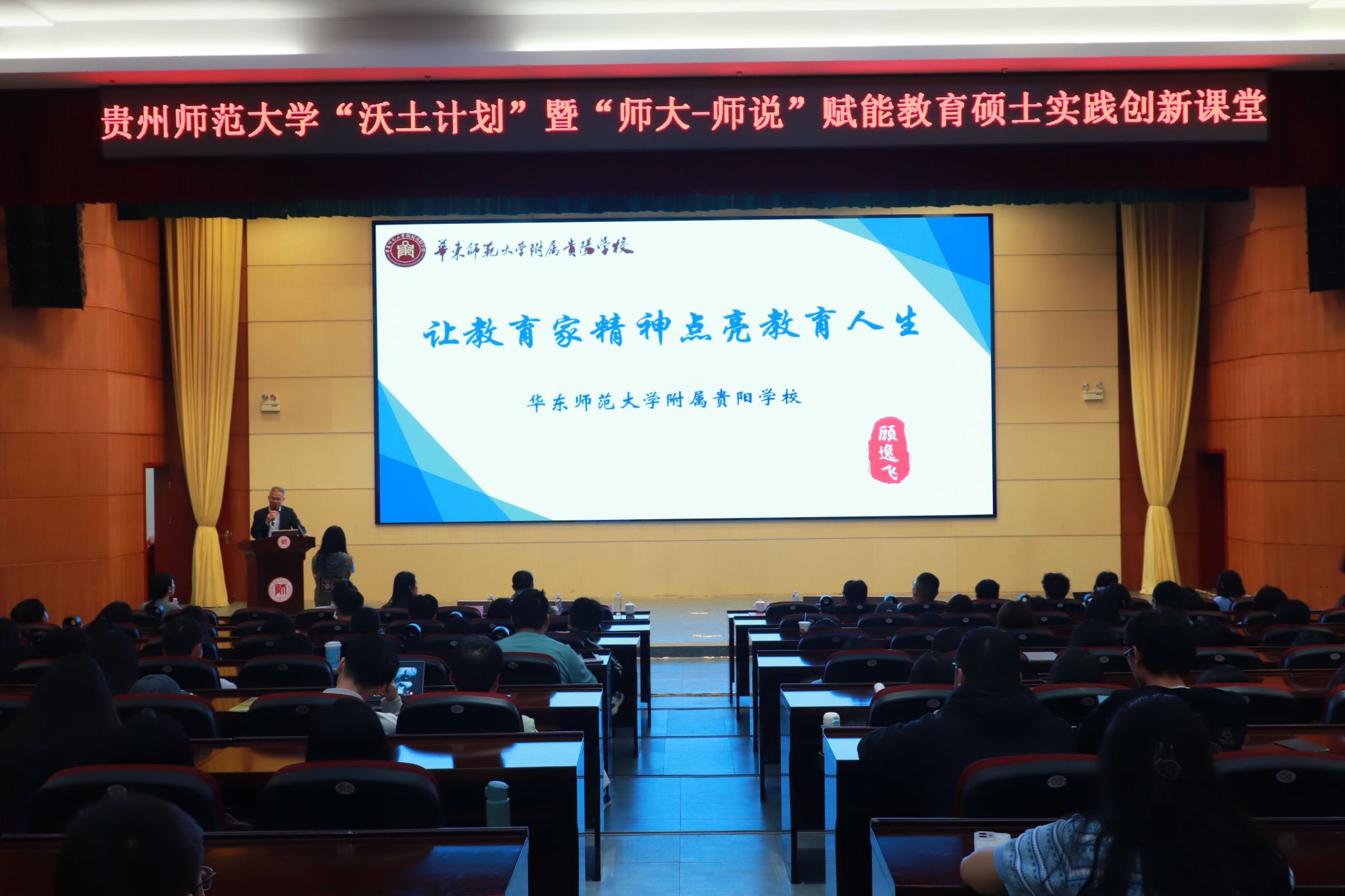 4月15日,贵州师范大学“沃土计划”暨“师大—师说”赋能教育硕士实践创新课堂(第六期)在学校东区会议中心一楼学术报告厅举办。活动特邀华东师范大学附属贵阳学校校长顾逸飞作“让教育家精神点亮教育人生”专题讲座。副校长刘瑾出席,研究生院(研究生工作部)及基础教育研究院有关负责人、教育硕士研究生代表参加。