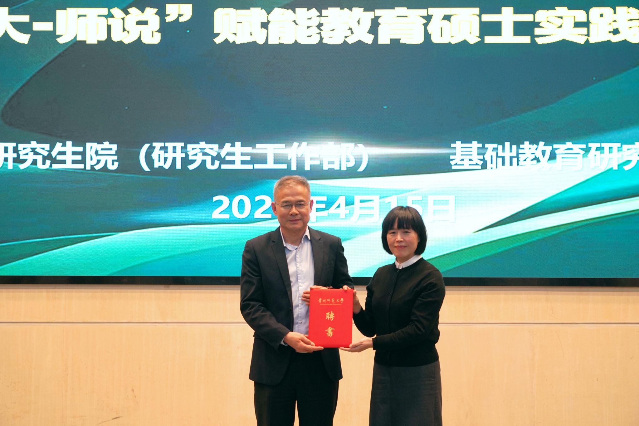 讲座结束后,刘瑾为顾逸飞颁发“师大-师说”赋能教育硕士实践创新课堂主讲人聘书。