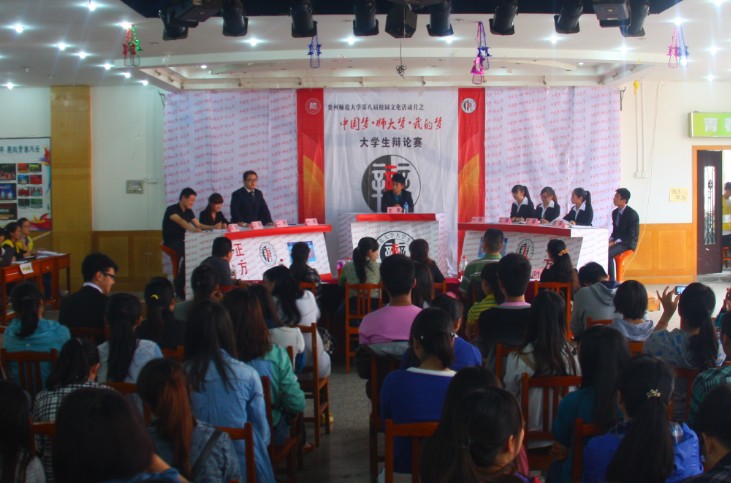 5月17日下午,由校团委、学生会承办的贵州师范大学第八届校园文化活动月之“中国梦•师大梦•我的梦”大学生辩论赛复赛在宝山校区学生活动中心举行。校党委副书记褚光荣,校团委副书记陈贵平、姚作舟到场观看了比赛。