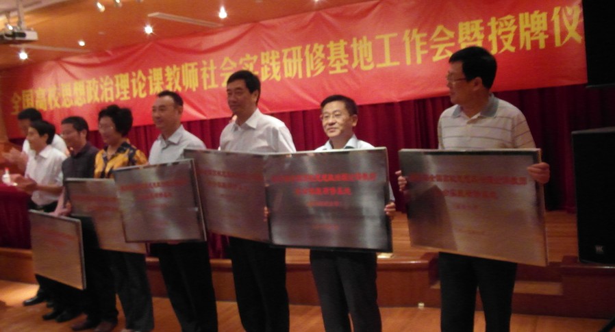 7月9日,中共贵州省委教育工委副书记李涛、贵州师范大学副校长蔡永生、省教育厅社政处副处长赵祥、贵州师范大学马克思主义学院院长欧阳恩良应邀赴上海参加首批全国高校思想政治理论课教师社会实践研修基地授牌仪式。教育部社科司司长张东刚亲自向贵州师范大学副校长蔡永生授牌。