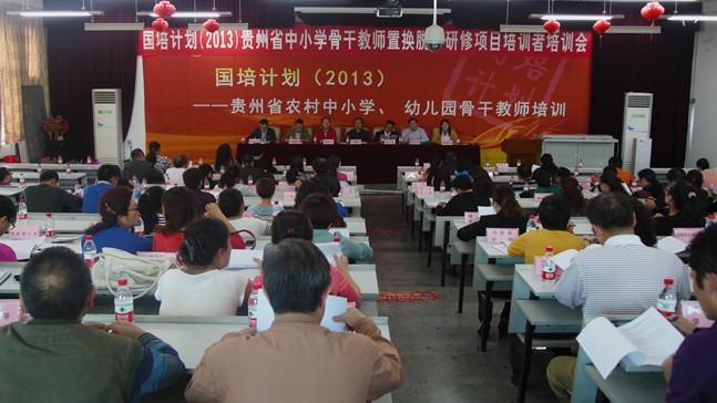 为期80天的“国培计划(2013)”-中小学置换脱产研修项目顺利结束第一阶段的集中培训任务后,10月份将进入第二阶段--到贵阳市优质中小学跟岗研修一个月。为做好跟岗研修阶段的各项准备工作,9月29日下午“国培计划”(2013)-贵州省农村中小学教师置换脱产研修项目贵州师范大学培训者培训会在我校田家炳教育书院8-1教室召开。贵州师范大学国培项目领导小组副组长、副校长刘肇军、赵守盈,省国培项目办主任、省教育厅教师工作处处长蔡志坚,贵阳市教育局正县级督学杨丽华,贵阳市教育局教师工作处处长周建新,教育科学学院副院长穆陟晅,贵阳市云岩区教育局、南明区教育局、白云区教育局、花溪区教育局、观山湖区教育局等区教育局领导,参与此次跟岗研修的贵阳市45所优质中小学校校领导以及贵州师范大学参与置换脱产研修项目相关学院领导、培训班班主任老师出席培训会。会议由贵州师范大学国培项目办主任、教育科学学院党委书记杨建原主持。