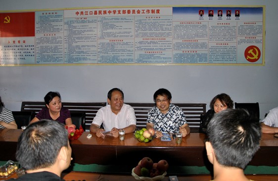 邓惠宾在走访中,县委副书记、县长黄霞及副县长刘鸿丽,代表县委、县政府与邓惠宾一行进行了交流,邓惠宾对江口县委、县政府对教育事业的大力支持、对“国培计划”工作的高度重视表示感谢,尤其感谢了当地教育部门和学校负责人对我校学生的关心和帮助。