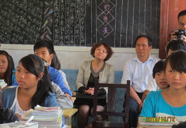 10月12日一早,邓惠宾一行参观江口县第一中学后便分成两组,由刘鸿丽副县长、秦杰局长及教育局副局长杨爱军等陪同,分别看望我校在德旺中学、德旺完小和太平片区学校、河坝九年一贯制学校和桃映片区学校顶岗的学生。
