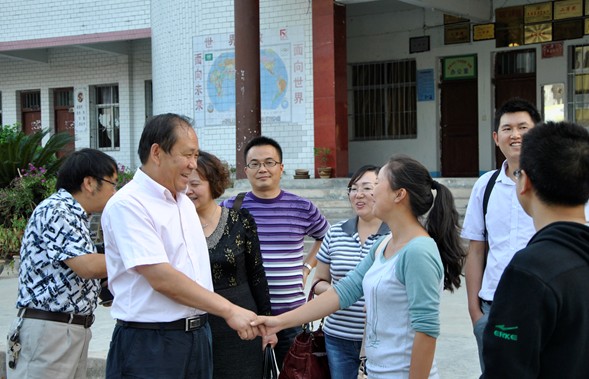 我校此次赴江口顶岗实习的同学共61名,分布在江口县城及闵孝、河坝、桃映、太平、德旺等乡镇。11日下午抵达江口县城后,邓惠宾一行在江口县副县长刘鸿丽及教育局局长秦杰陪同下,立即前往江口县二完小看望在县城实习的学生,随后又奔赴江口县民族中学、闵孝完小、闵孝中学等地看望学生。