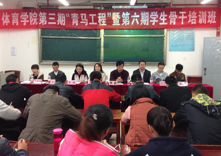 为深入推进“青年马克思主义者培养工程”,在大学生中培养一大批用马克思主义中国化最新成果武装的、有坚定跟党走中国特色社会主义道路理想信念的学生骨干,为他们逐步成长为坚定的马克思主义者奠定基础。体育学院第三期“青马工程”暨第六期学生骨干培训班于10月20早上在综合楼8-4举行开班典礼,莅临现场的领导有校团委书记李娅、院党委书记路言莉、院长姚鑫、校学工部副部长胡长华、院党委副书记张礼军、院党委秘书王自翔、院团委书记马丽华、院团委副书记彭佐扬。
