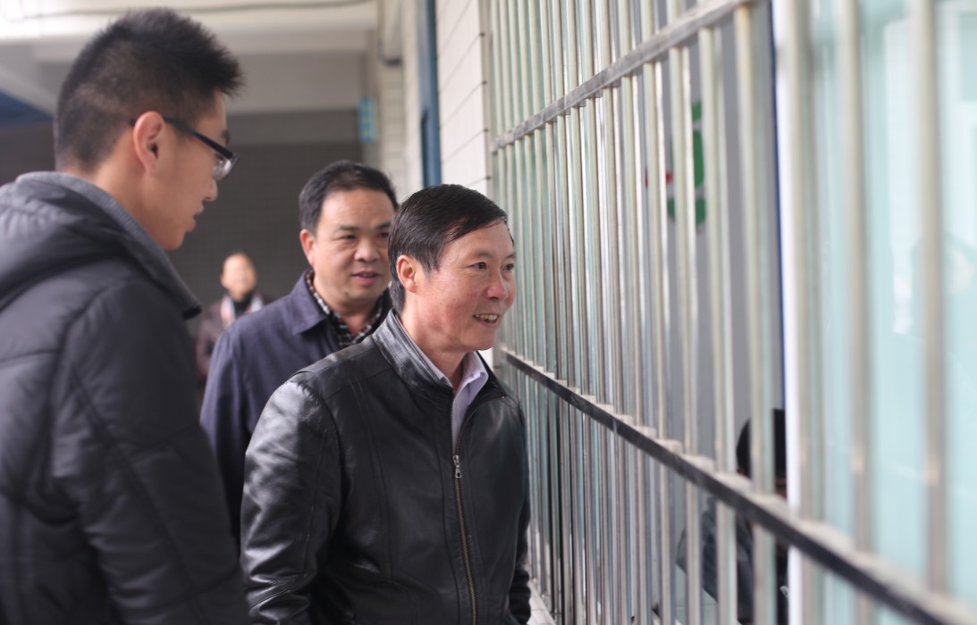 在扎佐中学,伍鹏程、刘肇军为避免打扰学生上课,要求不要不惊动学生,在教室外听顶岗实习学生讲授精彩语文课。从窗外看到顶岗实习学生良好的精神状态,有计划的课堂教学,在顶岗执教工作中“顶得上”时,伍鹏程脸上露出了欣慰的笑容。