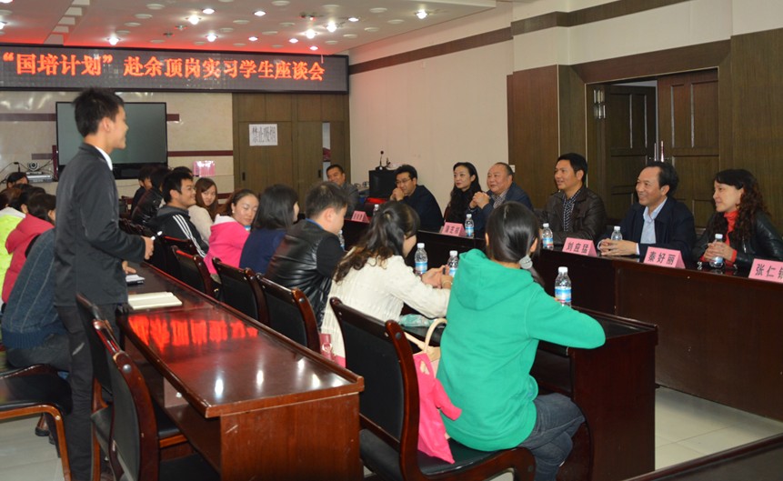 随后在县教育局会议室召开座谈会,来自余庆白泥中学、小腮中学、城关中学、实验中学、实验小学及县实验幼儿园等学校的顶岗实习学生分别汇报了各自的工作生活情况和此次实习的收获和感受。余庆县领导和县教育局负责人纷纷表示,贵州师范大学作为贵州师范类领头的高校,在学生的培养和培训上具有丰富的经验,注重学生教学技能培养,基本功扎实,责任感强,工作认真。“国培计划”项目的实施,贵州师范大学给余庆县送来了86名顶岗实习的学生,分赴余庆县28所中小学、幼儿园等顶岗实习,置换了27名教师到贵州师范大学去培训学习,这对余庆县的教育支持非常大,并希望通过这个“国培计划”的平台,进一步加强与贵州师范大学的合作。