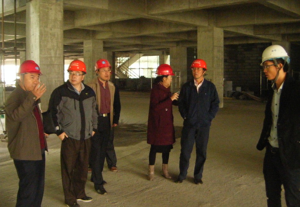 在图书馆大楼施工现场,谢晓尧副校长察看了已封顶的副楼和主楼部分楼层,听取建设单位项目经理对工程情况、建设进度和网络中心、图书馆主要负责人对功能区域划分的介绍,详细了解新图书馆的建设情况。要求网络中心和图书馆要积极跟进、主动参与,配合相关部门和建设单位做好新图书馆的建设工作。