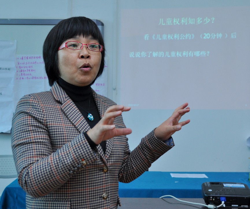为了能更生动更全面地把儿童享有的权利这一知识点讲述得有趣有意义,谢旌的讲学除了籍以相关权威的资料外,还加入了视频、图片、新闻及与老师们的讨论和互动几个环节。她把大部分时间放在了与各位老师的互动交流上,这种互动式的讲座使整个课堂一直都保持着积极活跃的氛围。。