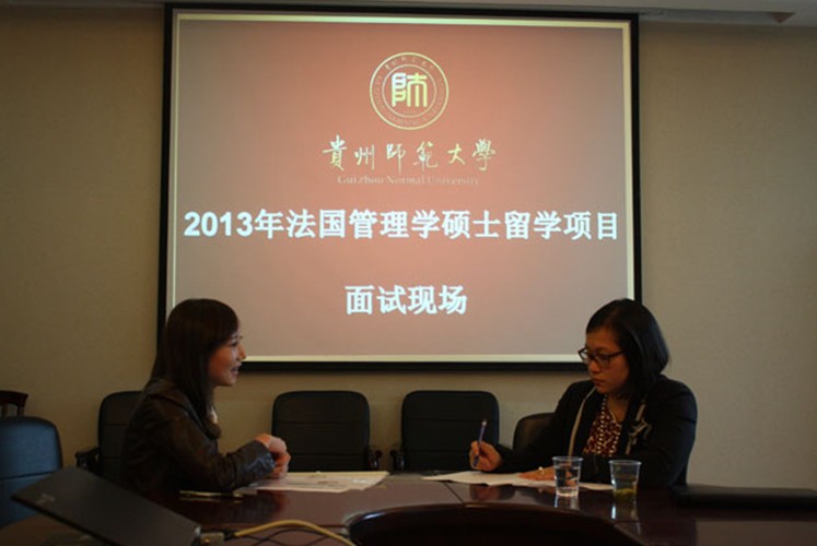 10月26日,2013年法国管理学硕士留学项目(中法“1+1”管理学硕士留学项目)面试在经济与管理学院举行。该项目由贵州师范大学和国家留学基金管理委员会东方国际教育交流中心联合举办,从2012年10月起,双方联合选拔并培养优秀应、往届本科生攻读法国国立科学技术与管理大学(CNAM)的管理学硕士学位,本项目已在我院举办两届。法国国立科学技术与管理大学(CNAM)面试官Tra Nguyen、经济与管理学院副院长王立伟、东方国际教育交流中心朱博共同出席入学面试。