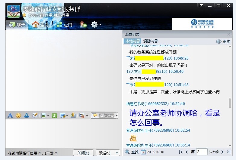 按照学校关于“转变作风提效能、创先争优促发展”主题实践活动要求,地理与环境科学学院党委围绕“重心下移、眼睛向下、面向学生、力求实效”的工作方针,创新性的在行政教工党支部与各年级、各专业学生干部、学生代表中搭建长效性的沟通桥梁,建立“提效能行政支部服务”QQ群,积极开展对学生的信息收集、疑问解答、学业指导、办事咨询活动。截止到目前,群成员涵盖学院党政领导、教工党支部党员、与学生密切相关的教学、教务、研究生管理、党建、团建等负责老师及所有年级全体班级学生代表。QQ群建立一月以来,为学生答复各种问题50余个,涵盖选课、职业生涯规划、学习时间安排、入党等诸多方面内容,深受学生好评;学院党委安排专人定期把学生关心关注的问题汇总,以纸质的形式上报学院领导,便于统筹协调、提升工作效能、扩大问题解决办法的答复面;同时按照“一月一主题、一月一讨论”的思路,由学生管理队伍教师轮流提出讨论提纲,在群里发起大讨论,与学生交流思想心得和学习体会,旗帜鲜明的为广大本科学生指明发展方向、把握职业生涯规划、帮助建立良好的学习工作生活状态等。