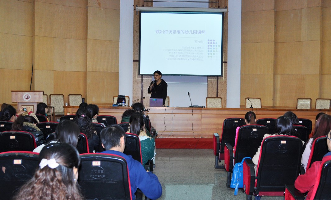 10月29日,美籍幼儿教育专家蔡伟忠在宝山校区田家炳教育书院为来自全国28个省(区、市)的40余名参加国培计划示范性集中培训项目的幼儿园骨干教师作了题为“跳出传统思维的幼儿园课程”的讲座。