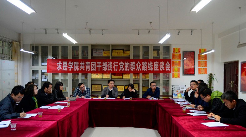 为增强求是学院共青团干部的群众路线意识,践行党的群众路线方针,学院团委于10月29日召开以“求是学院共青团干部践行党的群众路线”为主题的座谈会,院党委副书记万平,团委副书记张怀德以及各系团总支书记参加了座谈会。