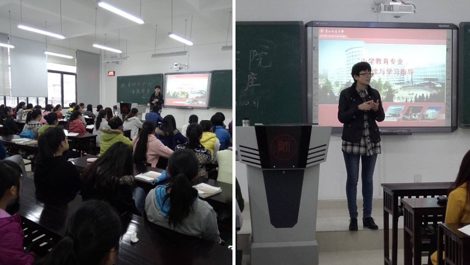 教育科学学院党委在“转变作风提效能,创先争优促发展”主题实践活动中,为充分体现学院以教育学生成长成才为目标的教学要求,增强学生对今年新增本科专业——小学教育的专业了解。10月31日上午十点,邀请到小学教育专业学科主任李纯老师在花溪校区GJ1303教室,为2013级小学教育专业的同学进行了一场题为《小学教育专业方案解读与学习指导》的专题讲座。