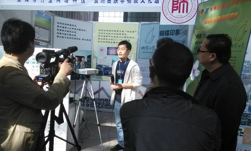 11月9日、10日由贵州团省委联合贵州省商务厅、省人社厅等共同倡议,贵州团省委青年创业就业服务中心、贵州省青年创业就业基金会承办的“2013首届贵州省创业投资博览会”在贵阳国际会议展览中心隆重举行。在校团委的组织安排下,我校文学院周曦远、曾槟槟、张庆、王安苏等组成的“蝴蝶印象”大学生创业项目团队参展。在此次展会中该项目团队精心准备、认真布展,用展板、图片、视频等多种形式呈现出我校创业团队风貌,在短短的两天时间里,我校的这支大学生创业项目团队得到了主办方的高度认可,并引起了社会强烈关注,人民网、北京青年网、贵州日报、贵州商报等多家媒体对该创业项目进行了报道,成为本次展会大学生创业项目的成功代表。