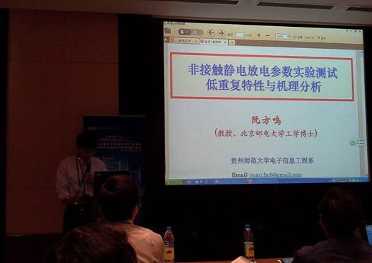 我校阮方鸣教授应邀出席这次高水平学术交流会,并做了题为“非接触静电放电参数实验测试低重复特性与机理分析”的大会报告,介绍了贵州师范大学电磁兼容研究团队研制发明国际上首个多因素静电放电效应测试系统(专利号:ZL201020024841.7)、并解决电极高速向靶运动放电与防止仪器损坏的国际难题上取得的突破性进展的研究成果,引起很了很大反响,受到与会专家学者、企业管理者的重视和认可,扩大了我省我校的在静电放电防护与标准化研究学术界的影响,并为可能的产学研结合提供了良好机遇。