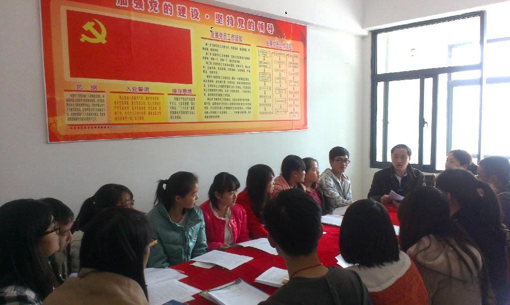 会议由党委组织员赵本喜主持。会上赵本喜老师对近期党建工作情况进行了通报,并对党建办下一阶段工作进行了安排,同时确立三年级党员下班联系一年级申请入党同学的工作要求并做相关培训,项君副书记在随后的党员教育中,明确要求党员不断加强对党的十八大及十八届三中全会会议精神的学习,以身作则,真正在学习生活中起先锋模范作用,积极投入各项工作,密切联系同学,自觉接受大家的监督。会上,学生党员积极发言,并表示要发挥党员的先锋模范作用,积极完成党支部的各项工作。