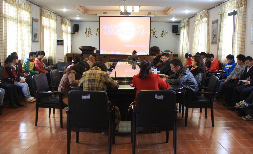 11月15日下午,为贯彻落实党的十八届三中全会精神,完善我院党员发展管理体系,规范党员发展工作程序,加强党员队伍建设,提高党员质量,我院党总支在二教四楼会议室召开了全体党员大会,院党总支书记胡高荣、党总支副书记印明富、党总支秘书李华、团委书记吴旭梦及各党支部书记、各支部学生党员参加了会议,大会由胡高荣主持。