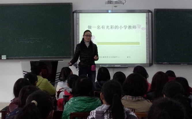 教育科学学院党委在开展“转变作风提效能 创先争优促发展”主题实践活动中,着力转变思想,通过“请进来走出去”等教育教学方式,拓展学生的视野,增强教师间的学习交流。11月14日上午,贵阳市南明区教师学习资源中心教师黄河应教育科学学院党委邀请,在花溪校区GJ2301教室为2013级小学教育专业新生作了题为“做一名有光彩的小学教师”的学术讲座。讲座由教育科学学院小学教育专业学科主任李纯主持。