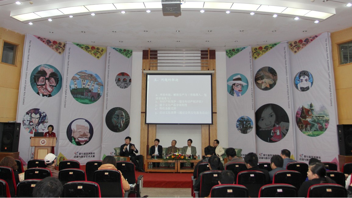 11月22日,北京青青树动漫科技有限公司创始人、工艺总监匡宇奇,著名作家、评论家葛红兵,新加坡动漫协会主席黄展鸣,韩国动漫协会名誉会长黄先吉应邀来到我校与动漫爱好者进行学习与交流。论坛在宝山校区田家炳三楼多功能厅举行,社科处处长谢廷秋主持。
