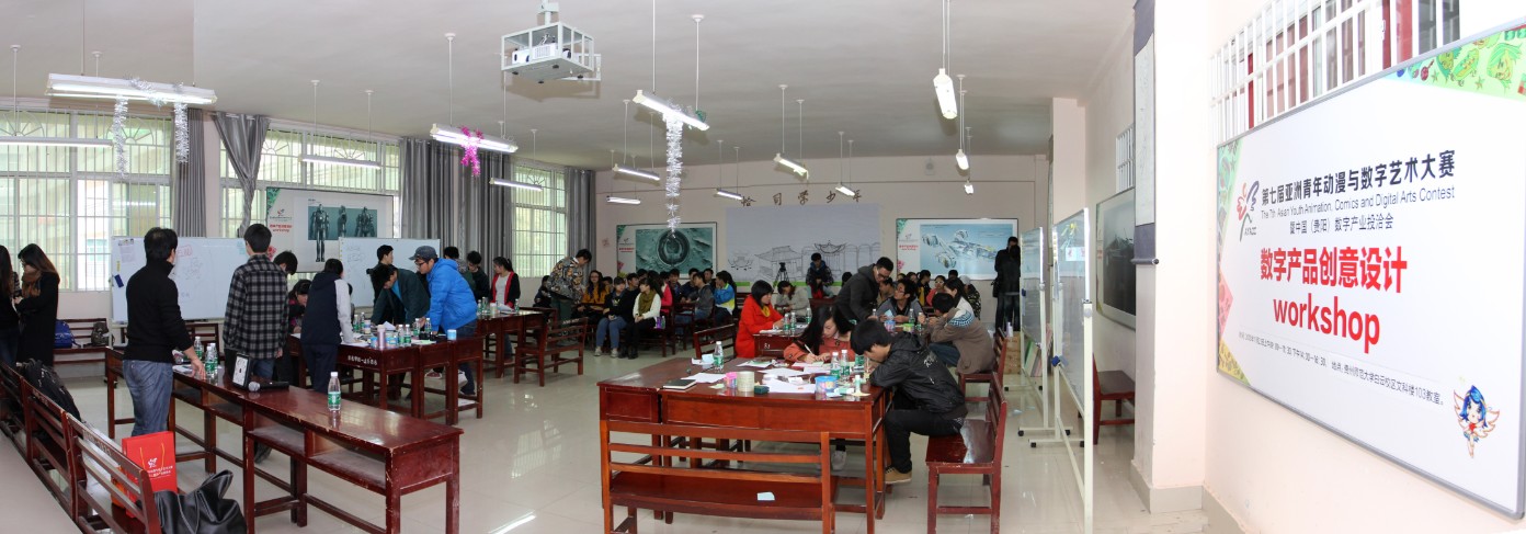 11月23日,第七届青年动漫与数字艺术大赛暨中国(贵阳)数字产业投洽会数字创意产品设计workshop培训交流会在白云校区文科楼举行。中国传媒大学教授付龙、宋戈、王珏、熊辛亲临现场,与同学们进行了交流,40余名学生参加了培训交流会。