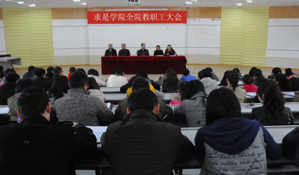 11月25日,求是学院在学术报告厅召开全体教职工大会,总结并部署期末工作。学院党委书记战勇主持会议。