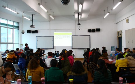 11月26日上午,贵阳市云岩区教师进修学校学前教研室主任石晓樊老师在贵州师范大学田家炳教育书院10-4教室为参加国培计划(2013)贵州省普惠幼儿园骨干教师短期集中培训的学员带来了一堂题为“幼儿园一日生活的组织与管理”的讲课。