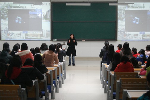 11月29日下午,我院在“转变作风提效能,创先争优促发展”主题活动中,结合专业教学实际,特邀请学前教育专业葛晓穗老师于花溪校区GJ6301教室为我院学前教育专业学生作了题为“幼儿园集体韵律活动组织与设计”的专业讲座。我院学前教育三个年级学生共计250余人聆听了讲座。