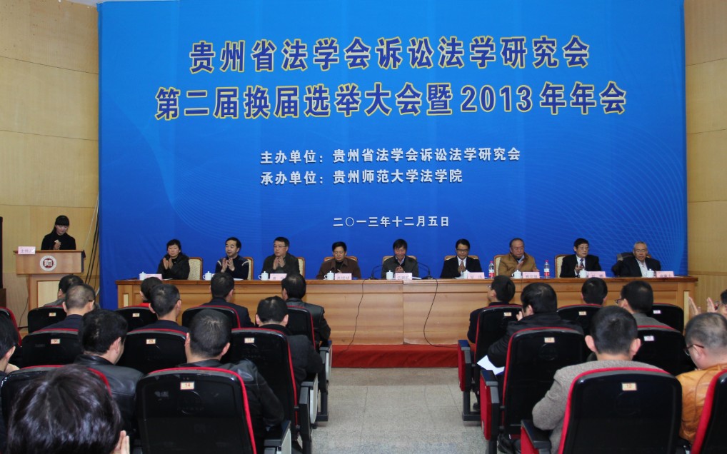 12月5日下午,贵州省法学会诉讼法学研究会第二届换届选举大会暨2013年年会在贵州师范大学田家炳教育学院三楼多功能厅隆重召开。此次会议由贵州省法学会诉讼法学研究会主办,贵州师范大学法学院承办。参与会议的代表近100余人,包括贵州省人民政府法制办公室,贵州省高级人民法院、贵州省公安厅、贵阳市中级人民法院、贵阳市人民检察院、云岩区人民法院、云岩区人民检察院、贵阳仲裁委员会、贵州省社会科学院、贵州师范大学、贵州民族大学、贵州大学、贵州财经大学、贵州警官职业学院、贵阳中医学院、贵达律师事务所、圣伦达律师事务所、天一致和律师事务所等相关单位的代表。贵州省法学会办公室主任王晓萍、研究部吴德恩到会指导工作。贵州师范大学法学院部分师生参加会议。