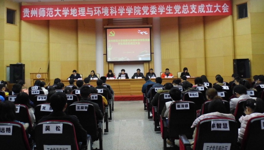 12月6日,贵州师范大学地理与环境科学学院党委学生党总支成立大会在学校田家炳教育书院三楼多功能厅召开。