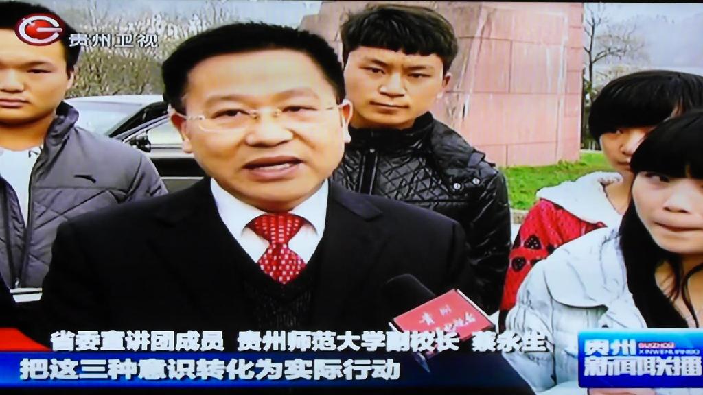 宣讲会开始前,蔡永生副校长与贵州理工学院师生就学习贯彻党的十八届三中全会精神进行了互动交流。同学们针对在学习过程中的热点、难点等问题进行了提问,蔡永生一一作了耐心解答,并要求同学们在学习中结合紧密结合自身思想实际,把学习党的十八届三中全会精神与专业知识学习、社会实践等有机结合起来,树立远大理想,不断提升综合能力,为全面小康社会的建成和中国梦的实现奉献自己的青春和智慧。宣讲会结束后,蔡永生还就高校师生学习贯彻党的十八届三中全会精神热情等话题接受了贵州广播电视台记者的采访。12月6日,贵州卫视新闻联播对宣讲情况、师生互动、专题采访等进行了报道。