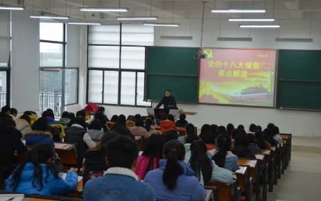 党课伊始,蒙黎明老师从一名党员的角度深刻解读了十八大报告的精神要点,在对十八大的重要内容进行回顾的同时,深入浅出地剖析了要点,为同学们更好地理解十八届三中全会精神打下了基础。蒙老师主要对十八大的十个要点进行了解读即:建成小康、两个翻番、五位“一体”、协商民主、党的指导思想、八个坚持、两个“百年”、24字核心价值、三型目标、文化活动,让同学们了解到了十八大对民生、经济建设、政治建设、文化建设所作的改革,以及最终要实现的目标。在这期间,蒙黎明老师还不时的提出一些问题让同学们思考,并细心为同学们解答。最后,蒙黎明老师指出,作为大学生,我们应该把建设祖国作为我们的奋斗目标,同时要学好自己的专业,以后为国家贡献自己力量。