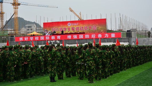 为进一步加强学生思想政治教育工作,提高学生国防意识,增强学生身体素质,磨练学生意志品质,结合学校实际,学校决定于12月27至1月7日在三个校区同时开展2013级学生集中军训工作。集中军训期间,学校成立军训师,军训师下设政治、训练、后勤三个部。党委副书记、纪委书记邹克扬担任军训师政委;副校长赵守盈担任军训师师长。2013级全体新生(从预科升入到2013级学习的学生、今年新进校的预科学生不参加军训)。